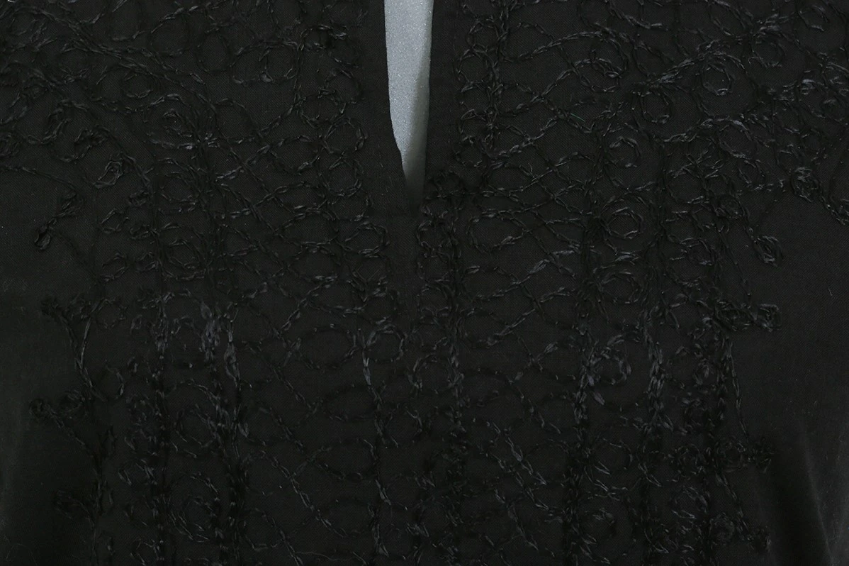 Hals: ronde hals met aan de voorkant een inkeping