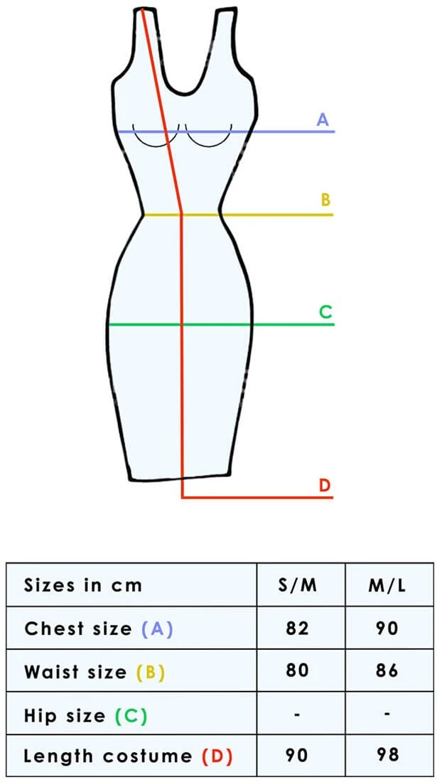 Sluiting: geen, de jurk wordt over het hoofd heen aangetrokken
