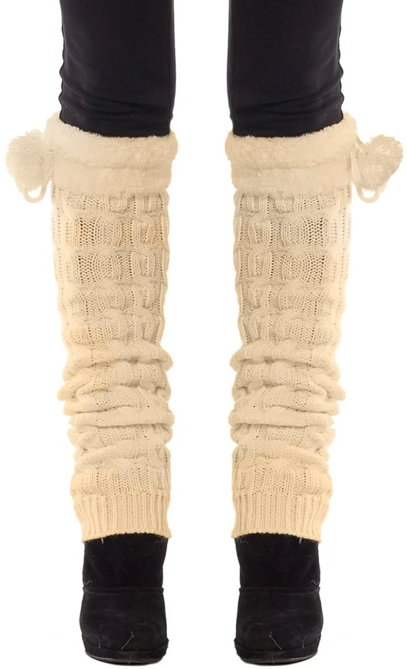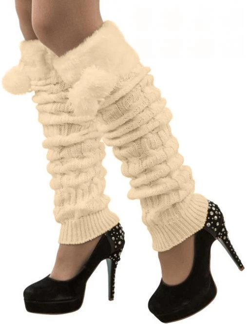 Mooie ecru beenwarmers met een fluffy rand aan de bovenzijde. Hier gaat een touwtje doorheen met aan de uiteinden een bol. Dit touwtje kan je aantrekken, zodat de beenwarmers iedereen passen. Gemaakt van 85% polyacryl en 15%polyester. Leuk om aan te trekken naar een kerstfeest.