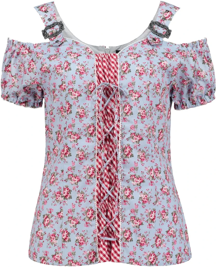 Een prachtige en vooral elegante trachtenmieder, met een kleurrijke print van bloemen. Deze mieder staat goed boven een mooie lederhose.