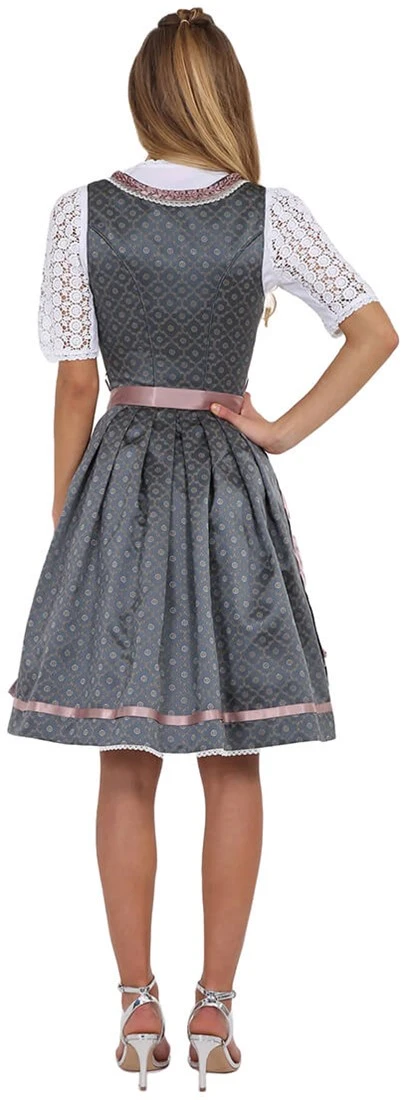 Details dirndl: rechte halslijn die versierd is met een vlecht langs de decolleté