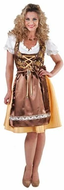 Mooie luxe tiroler oufit voor dames, bestaande uit een jurk, een schort en een losse blouse.