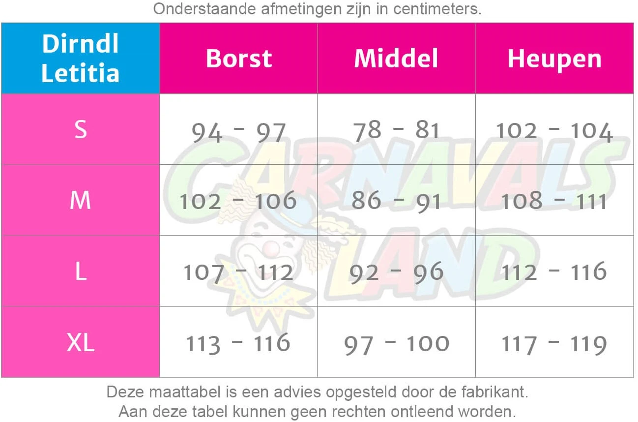 Details: bewerkt galon op de borst, rood schort en de rok is afgewerkt met zwart kant