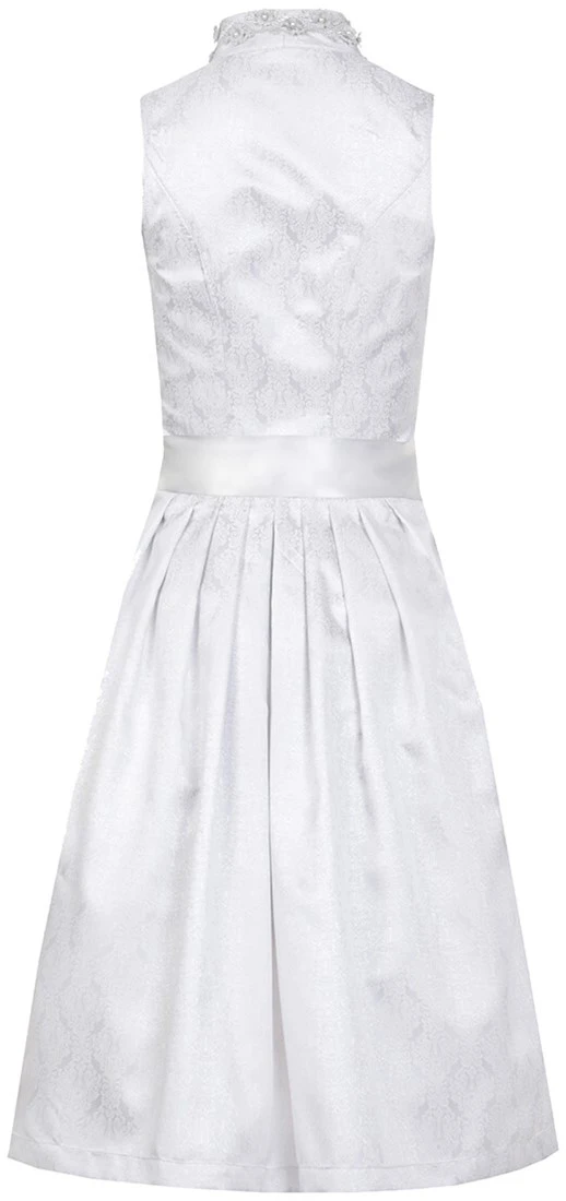 Details: hartvormige halslijn versierd met kanten band met bloemen en parels. Door de miederhaakjes met strass een satijnen lint