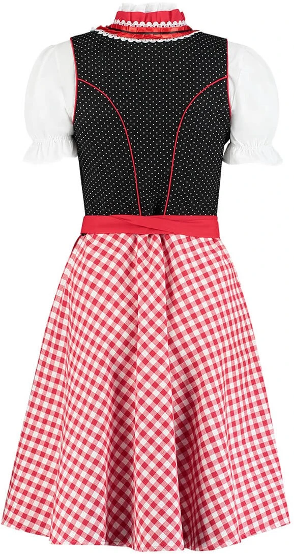 Een complete dirndljurk met blouse en schort! Alleen nog hakken en kousen en je kan zo naar het Oktoberfest.