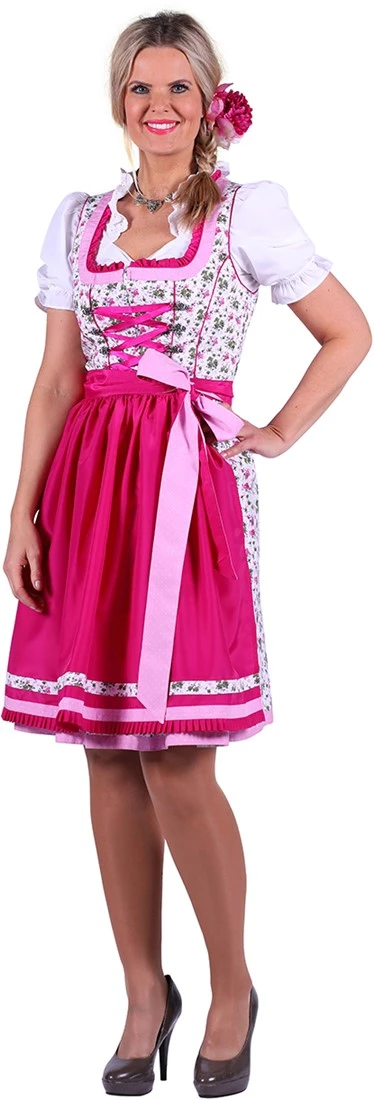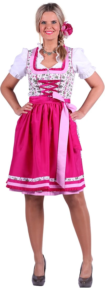 Een mooie dirndl met bloemen en roze kleuren. Erg leuk om aan te trekken naar een Oktoberfest.
