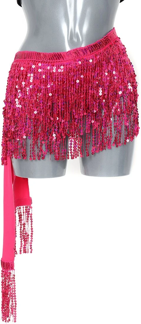 Details: de rand aan de bovenkant en de franjes zijn versierd met pink holografische pailletten