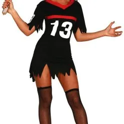 Een leuk jurkje voor een Halloween party om als de vrouwelijke versie van Jason verkleed te gaan. Het kostuum bestaat uit het het jurkje, het masker en de kousen.