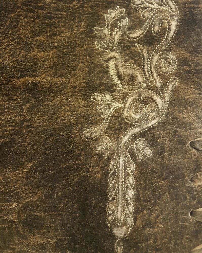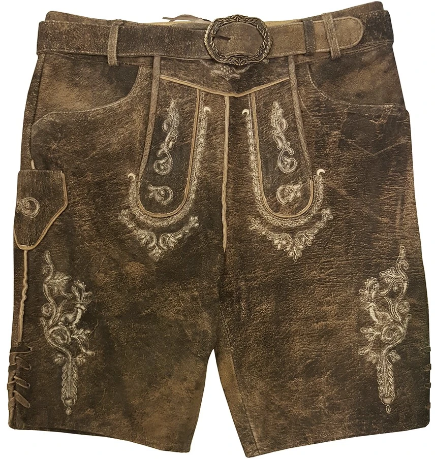 Een mooie stoere lederhose met een authentieke look. Deze antieke Tiroler broek is ook verkrijgbaar in een lichtbruine/sahara gekleurde variant.