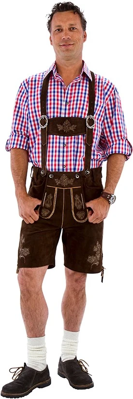 Mooie Lederhose perfect voor een Oktoberfest. Deze bruine, korte lederhose is van geitenleer gemaakt.