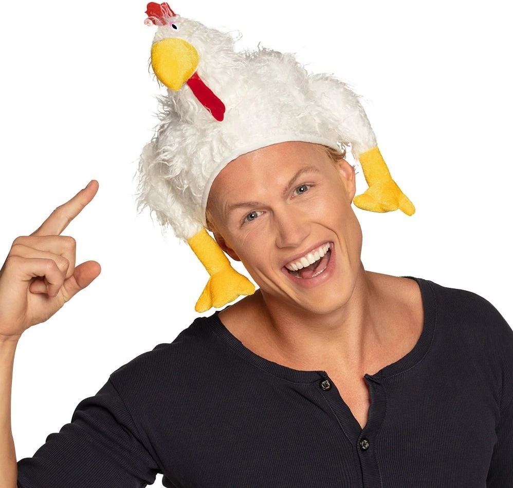 Erg grappige hoed voor bij een kippen kostuum. Leuk om te dragen met carnaval.