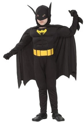 Erg leuk kinderkostuum gebaseerd op Batman, het kostuum is voorzien van spieren, zodat ‘Batman’ wat breder lijkt. Het kostuum bestaat uit een gespierde jumpsuit, cape en masker.
