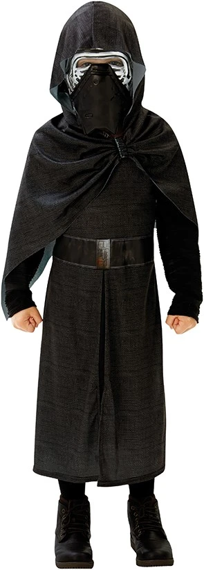 Een gaaf kostuum om je te verkleden als Kylo Ren uit Star Wars Episode VII! Het kostuum bestaat uit de zwarte mantel en een cape, inclusief riem en halfmasker.
