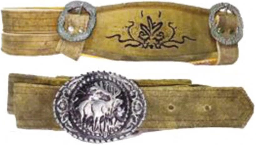 Riem: bewerkte gesp met daarop een hert afgebeeld