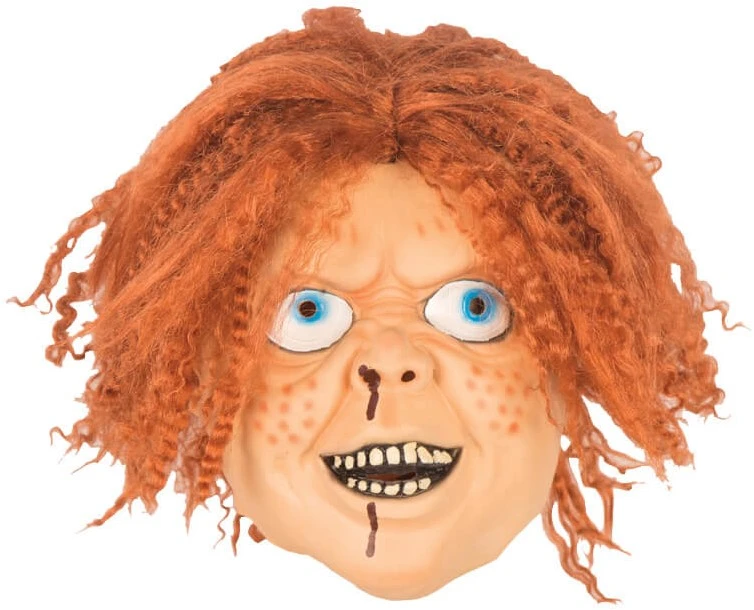 Een eng masker dat duidelijk geinspireerd is op Chucky uit de films Child’s Play. Het creepy masker is gemaakt van dunne latex en heeft lang rood haar. Voorzien van kijkgaten bij de ogen en gaten bij de neus en mond. Dit griezelige masker trek je over je hele hoofd heen.