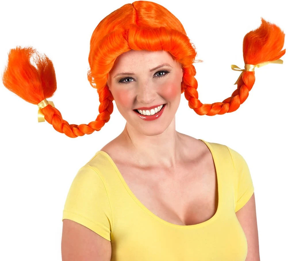 Wil jij verkleed gaan als het sterkste meisje van de wereld? Dan mag deze pruik zeker niet ontbreken.