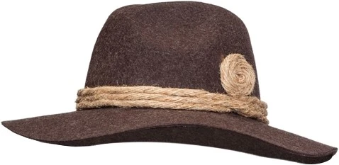 Wolvilten bruine trachtenhoed, goed te combineren bij een tiroler outfit. De hoed is ook te verkrijgen in het grijs.